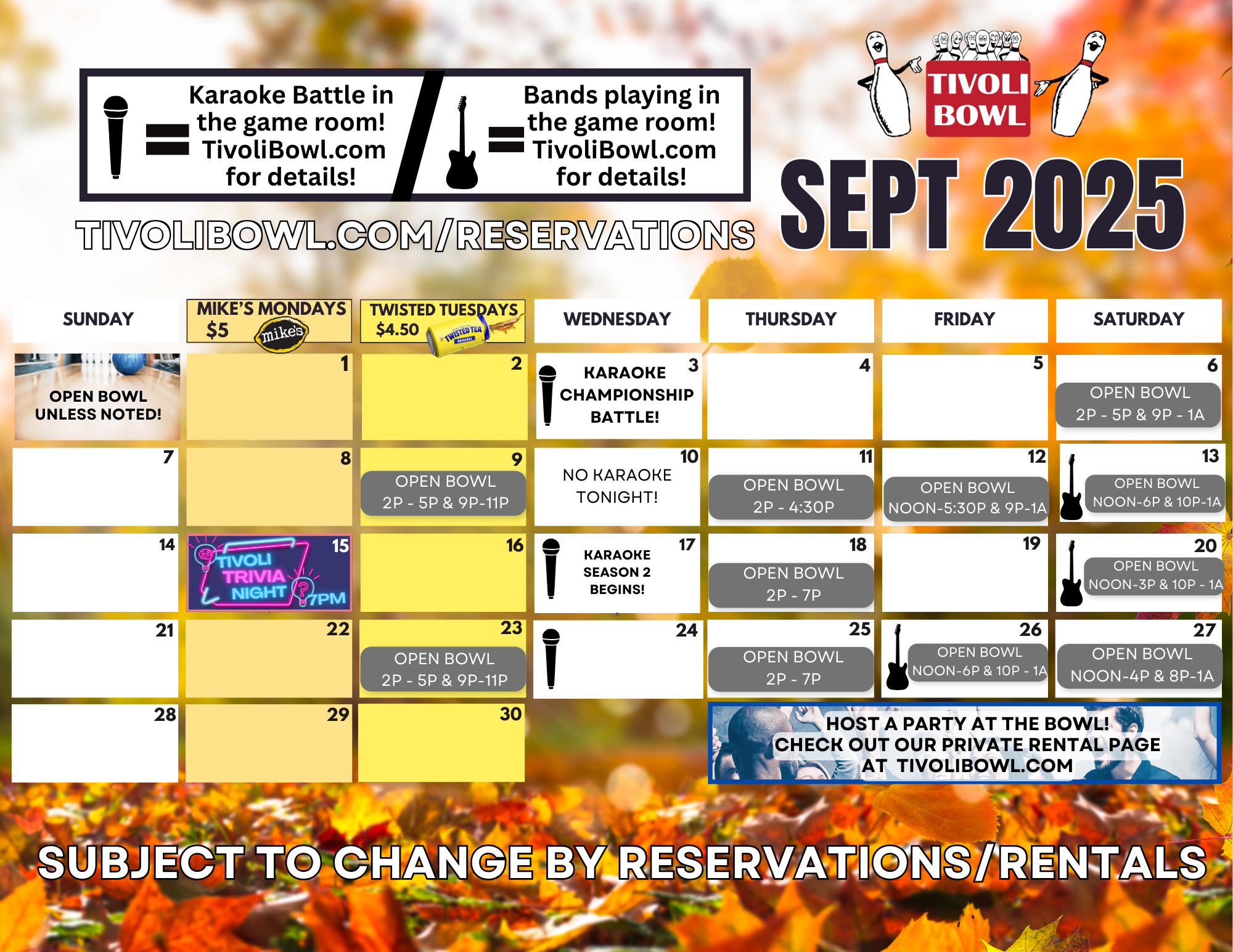 As the seasons change, so do the hours of the Tivoli Bowl!