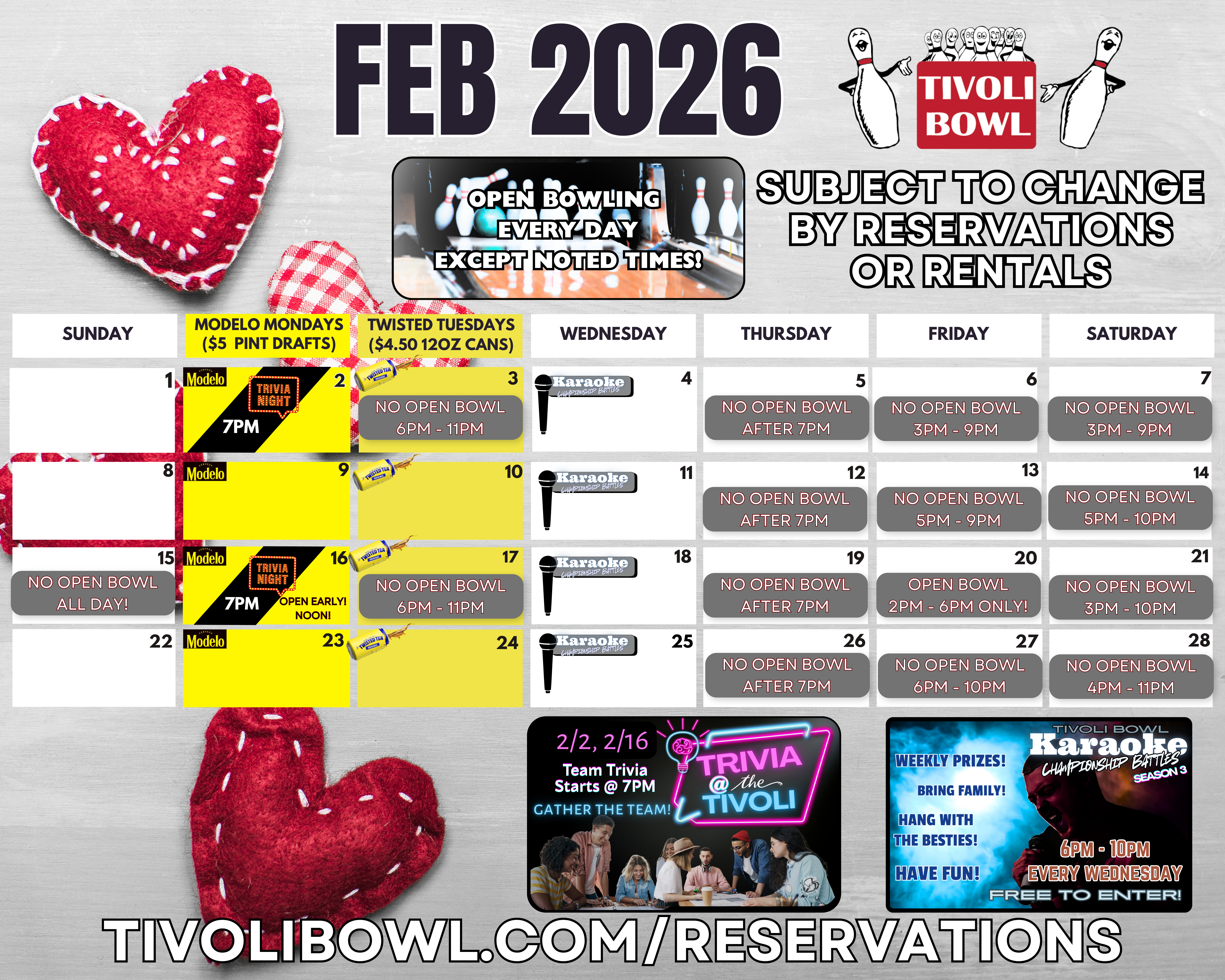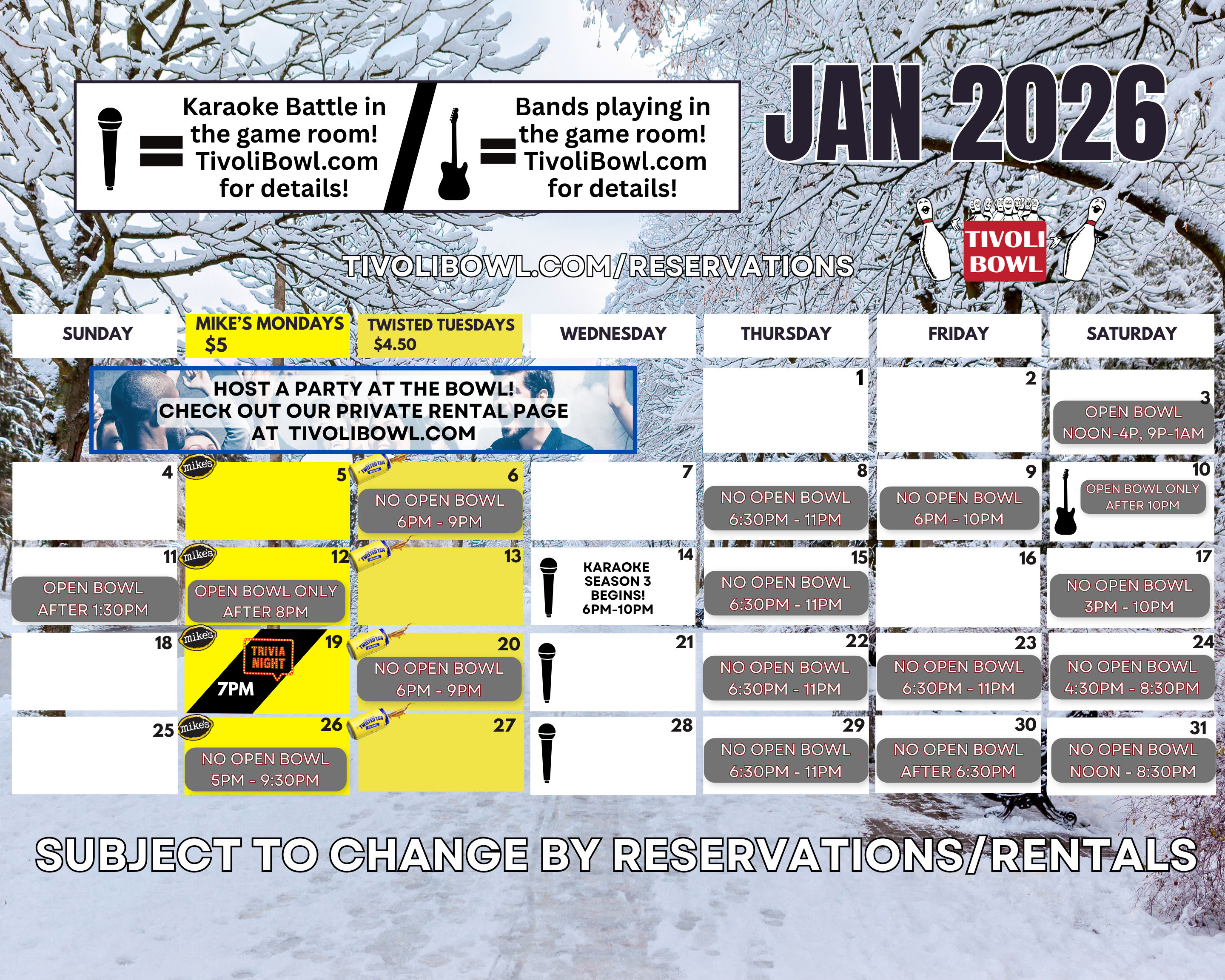 As the seasons change, so do the hours of the Tivoli Bowl!