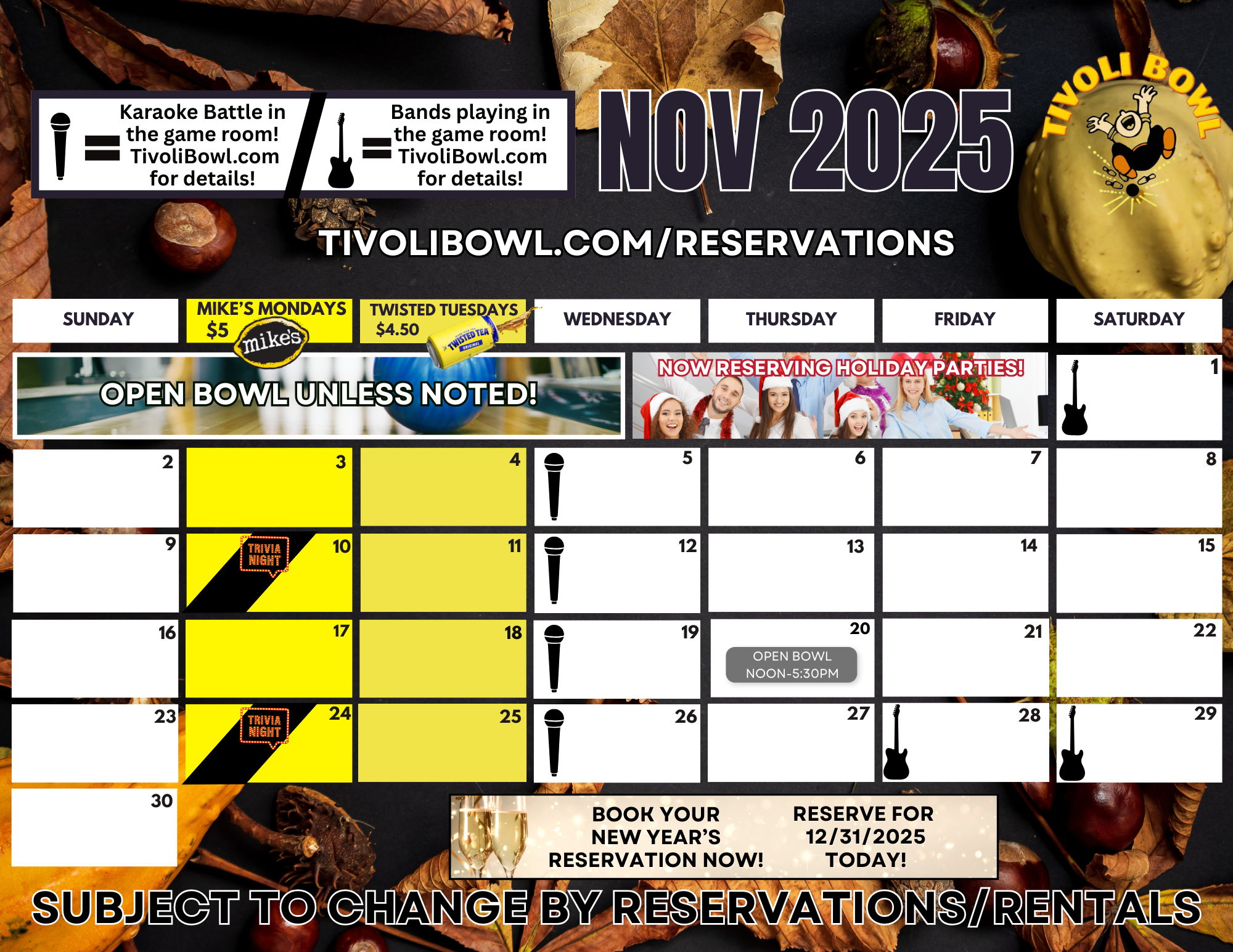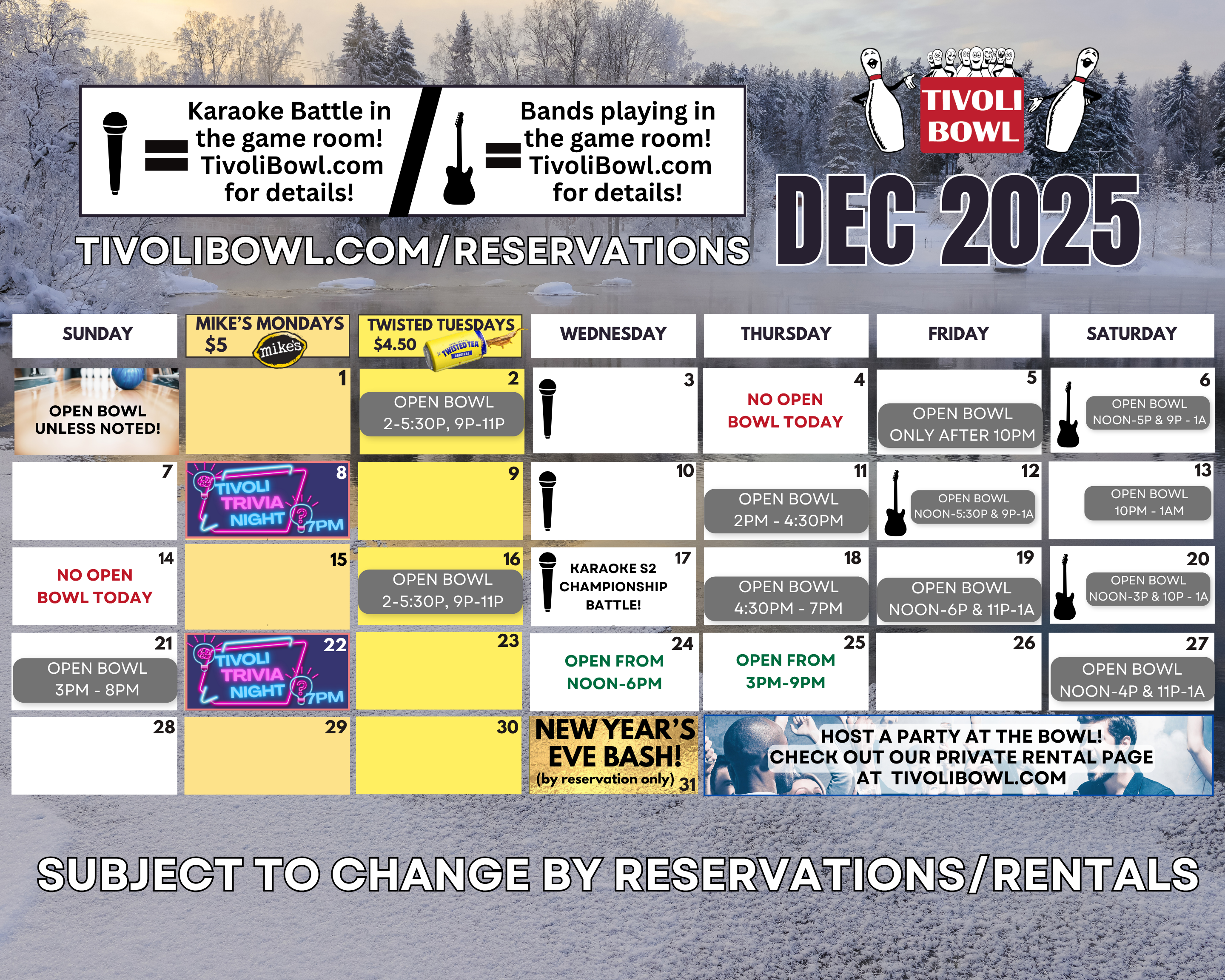 As the seasons change, so do the hours of the Tivoli Bowl!